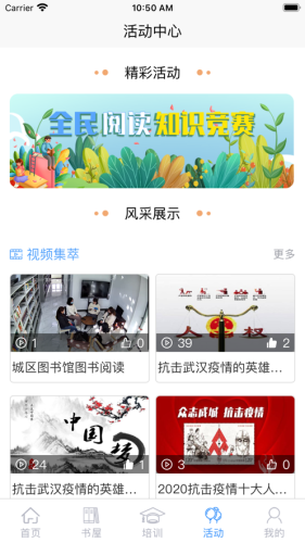 活动中心(开展线上答题竞赛,阅读打卡,线下活动线上风采展示);