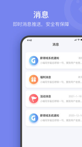 找活儿,就上薪领域;大厅,超多任务,还有个性化推荐;任务,日历展示任务内容,清晰明了;消息,即时消息推送,安全有保障;我的,我的钱包及银行卡,线上提现功能。