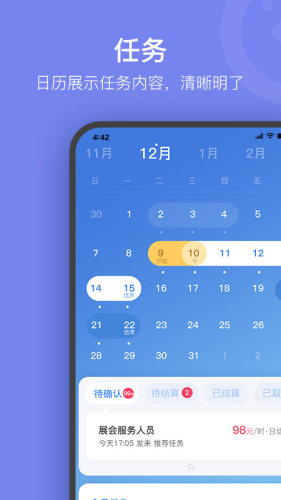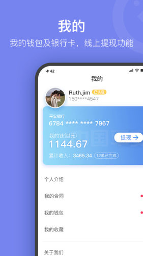 4、是公司为满足广大平台用户个性化需求,专属打造的一款APP软件,采用自研云智能系统“一键式”实现合同网签、线上接活、个税申报、服务交付、结算服务。
