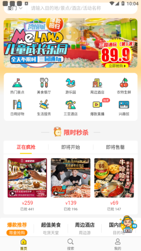侠侣亲子游app是一款亲子生活服务平台,平台拥有热门景点,美食餐厅,游乐园,周边酒店,生活服务等等功能服务,可以帮助更好的生活旅游。