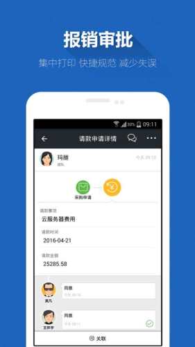 2、财务支持:报销审批单集中打印,流程快捷规范,减少人工失误。