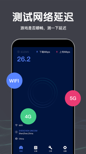 查看手机网速,2G,3G,4G,5G,WiFi都可使用。