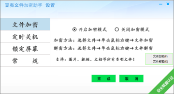 豆壳文件加密助手是一款完全免费的文件加密工具,软件除了提供加密之外,还拥有定时关机、锁定屏幕等几项实用功能,帮助用户更好的保护电脑隐私!