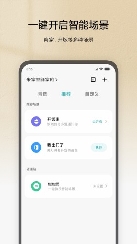 米家APP是你家里的智能硬件管理平台,不仅连接小米及生态链公司的智能产品,同时也开放接入第三方智能硬件,还有精品生活电商及新鲜酷玩资讯,为用户提供智能生活整体解决方案。你可以简单便捷地通过手机与智能硬件交互,并实现智能硬件之间的互联互通。一键实现个性化定制的智能场景,与家人朋友分享智能设备,在这里变得非常简单。你与智能生活,只差一个米家APP的距离。