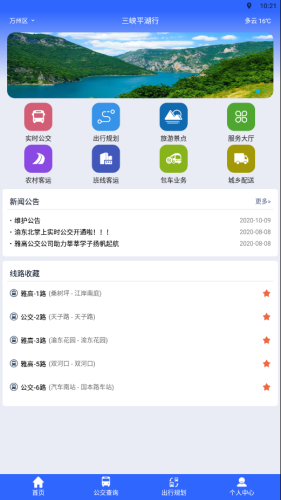 “三峡平湖行”APP为重庆市渝东北片区公共交通出行提供实时公交查询、换乘路线查询、周边站点公交线路查询、定制公交、定制包车。