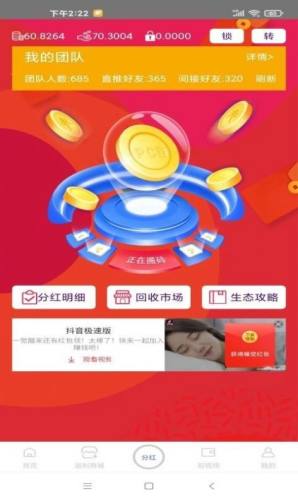持有PC币每天15点分红,也可以直接回收,点击持有PC或者“分红”-“回收市场”就可以看到,最低3PC币回收,1币单价0.12元,账户里需要保留10PC。