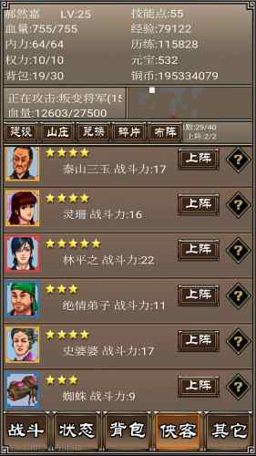 2、离线闯关:击败各门派的关卡,就可以收集到相关武学等资源