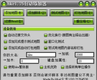其他:加钱木 彩字聊天 悬浮彩字 开/关地图 瞬间造兵/升级科技 设置人口/人口最大值 破解英雄限制(矿图) 设置金矿数 设置游戏时间