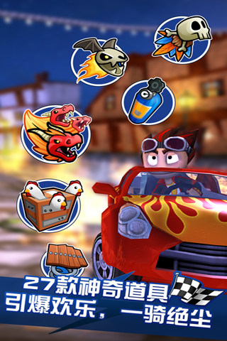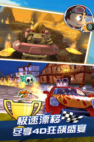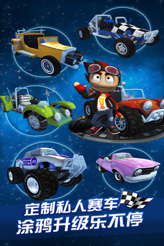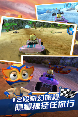 在这个令人激动、丰富有趣、充满惊喜的越野卡丁车世界中纵情狂飙吧!和各位身怀绝技的赛车高手一试高下,收集各种能助你一臂之力的升级,包括防护罩、火球和润滑浮油,解锁并升级种类多样的车辆,从沙地越野车到怪物卡车,应有尽有。在全3D构筑令人惊叹的12个赛道上,在6种不同模式中,在各路高手间,一展身手!