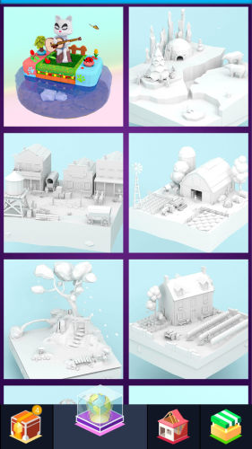 大家可以在这里打造出独一无二的作品出来,我们可以按照已经打造出来的作品进行临摹,也可以由自己精心设计,可以创造建筑物、交通工具、日常用品,只要是你所想到的都能在这里进行拼图,我们进入游戏之后就可以选择需要完成拼图的类别。