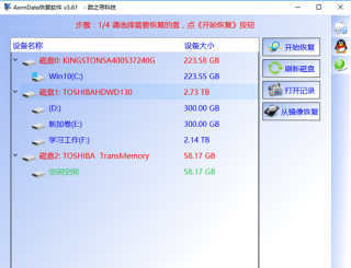 1。 打开软件后,选择需要恢复的盘,点《开始恢复》。