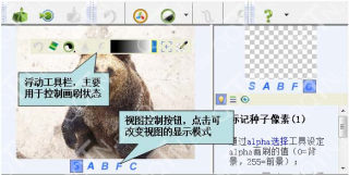 1、alpha画刷:利用alpha画刷可直接指定像素的alpha值,其用法在基本用法一节中有详细说明,在此不再赘述。图1(A)显示了用alpha画刷标记的种子像素,以及由此标记得到的alpha图。
