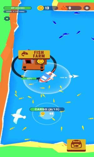 一款画风可爱的休闲娱乐类游戏。游戏中你将会乘坐你的轮船出海捕鱼,使用捕鱼网将海里的鱼一网打尽~滑动屏幕控制船只移动,靠近鱼群即可自动捕鱼。不过可不要让鱼群脱钩了,跟紧它们!当船只装满了鱼之后运送到各个城市里卖钱吧~