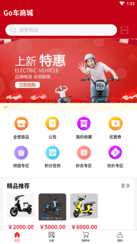 Go车商城app,专注电动车的在线购物平台,为你推荐超多品牌电动车,价格实惠,福利多多,每天签到获取积分,换购商品,节省用户更多网购开销,放心买好货,购物省更多。