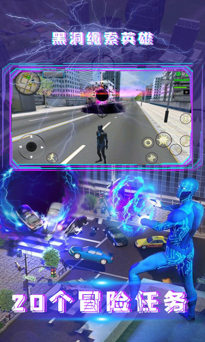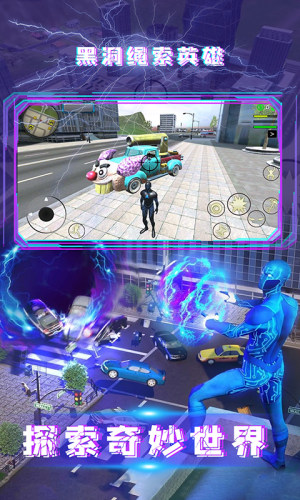 4、玩家将跟随黑洞绳索英雄一起闯荡于这个都市之中,打击罪犯,体验那种潇洒的惩恶扬善的英雄风范。