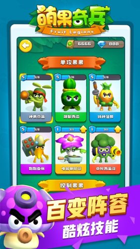 萌果奇兵无限钻石版,专为玩家打造的修改版本,金币钻石科技点全部修改,玩家可以解锁全部果果,根据属性技能搭配站位,合成升级炮塔,对抗哥布林、牛头人等怪物的入侵,守护金色种子。