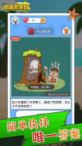 满满求生欲红包版,这是史小坑游戏系列的最新赚钱游戏,在荒岛上帮助史小坑闯关,就能获得大大的现金红包,通过文字选择和搞笑解谜来完成整个故事,看广告还能提高红包的奖金呢。