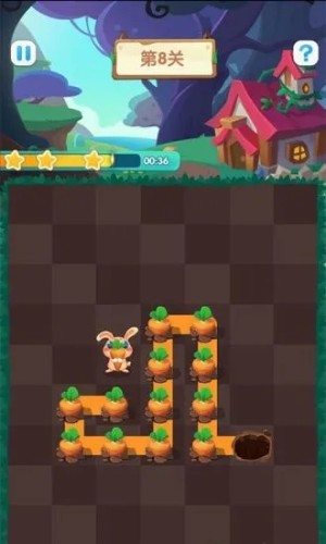2、帮助兔兔吃到胡萝卜闯关,简单来说就是一笔画玩法,一关大概有2-3元;