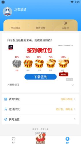 西瓜计步app,天天走路赚收益,玩法简单,每天兑换步数,兑换更多现金收益,让你赚钱更简单。来西瓜计步app,每一步都有价值,走路兑红包,天天赚取零花钱。