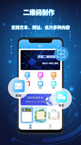 多种二维码制作:文本、网址、名片、公众号、wifi等多种格式生成。