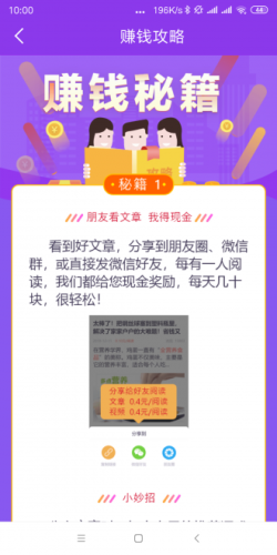 3、新人下载就送1元奖励,转发文章单价全天0.4元一次,单价虽低但不暗扣
