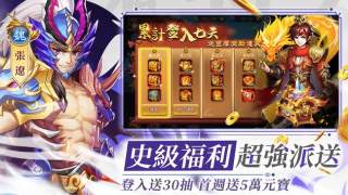 3、福利超强每天派送,上线就送30抽!登入就送VIP!更有十万元宝大放送!并且有大量的资源附赠!要让广大玩家领到爽!拿到爽!玩到爽!为的就是爽快畅玩三国!