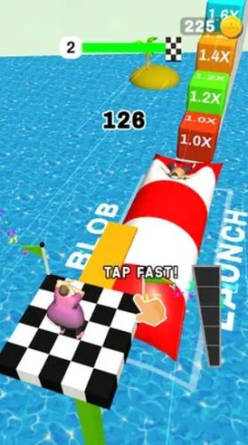 胖子给我推是voodoo毒厂制作的搞笑跑酷游戏,我们的胖子橡皮人要在路上吃得更胖,冲刺更快,这样才能通过蹦床来压飞伙伴,获得更多的分数,所以在胖子给我推游戏中,越胖越好哦。