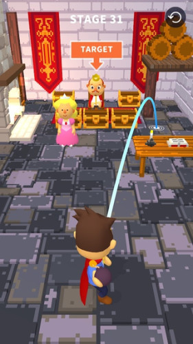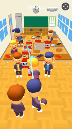 每个关卡场景中都有着一个非常讨厌的人,你可以点击屏幕滑动来调整抛投炸弹的轨迹,然后点击红色按钮引爆炸弹,去攻击挑衅的人。