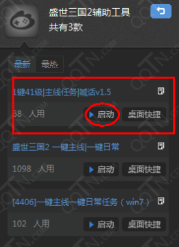 4.在盛世三国2辅助工具中“启动”“盛世三国21键41级|主线任务|喊话v1.5”