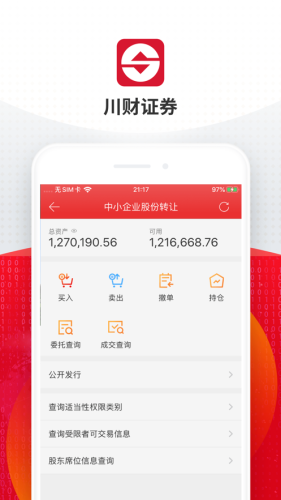 川财e行手机炒股为您提供实时行情、银证转帐、在线交易!让您投资省时、贴心、方便!