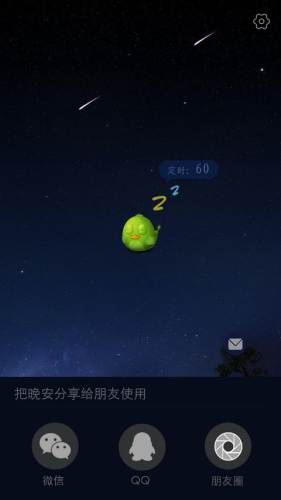 3、你也可以在需要放松心情、调整情绪的时候收听晚安。应用采用极简设计,你只需点击一下小鸟即可收听!