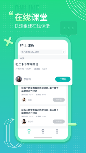 1、打开软件之后在首页中后我们可以加入课堂,查看课程回放;