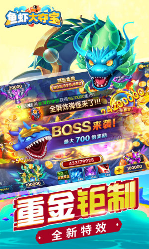 -百分百还原街机捕鱼 爆金币爆弹头爆发啦;金龙出宫财运亨通;金蟾一来升官发财;好运爆发奖品你拿