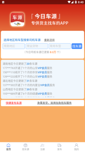 今日车源app是一款专为二手车交易设计的平台,平台拥有全国最新车源几十万条。货主可以在平台按地区和车型车长寻找找车源、司机,支持分类筛选,便捷找车,帮你找到最合适的车源。