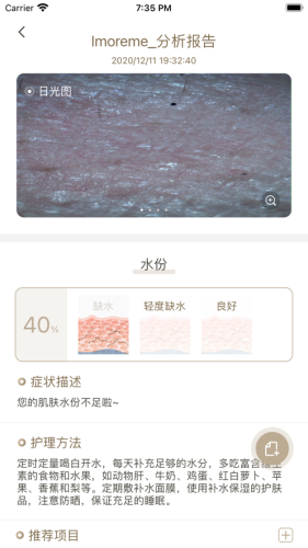 配合强大的AI算法,检测结果自动生成报告,并提供专业护肤建议。