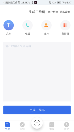 论是文本、通讯录、邮件、电话、名片、网址只要是你想生成的。