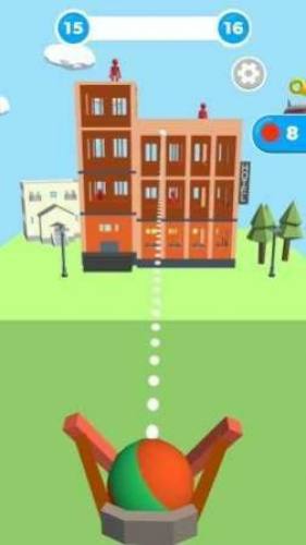 2、休闲解压弹弓游戏,需求拉动自己的弹弓,将对面的各种房屋建筑全部破坏;