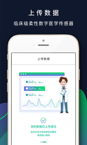 ithoth,通过蓝牙连接索思心电监测设备,可以长程监测心率,实时显示动态心电图。用户结束监测后,一键上传数据。