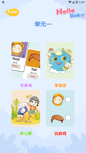 幼儿互动英语app是一款幼儿英语学习软件,软件内有3个阶段的英语学习,软件拥有较强的趣味性,可以提高孩子的学习兴趣,通过玩游戏的方式来学习。