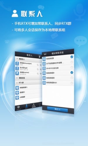 信达通讯录与腾讯通RTX消息互通、组织架构同步,实现了RTX手机版的功能。