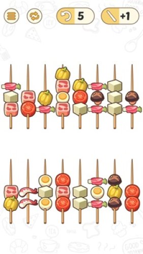 烧烤分好类是一款非常休闲的美食游戏,游戏中的烧烤摆放非常的乱,同一根棍子上插着不同的烧烤食材,这样非常不利于烧烤的烤制,所以你要把他们做好分类工作。