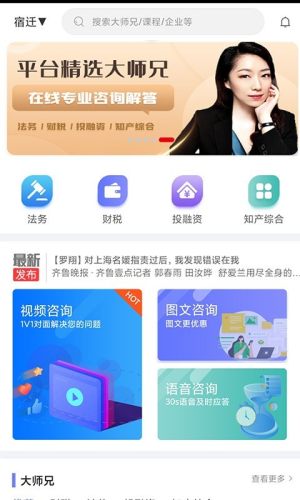 51大师兄平台,整合银行机构、投融资机构、会计师事务所、律师事务所、知识产权代理机构、评估公司以及已建立合作关系的多个产业孵化园区及众创空间、创业平台资源,为中小企业提供属于自己的云数据服务体系,打造线上财税、法律、投融资专家和中小企业专业线上咨询,实现线上专业化咨询或实时专业化培训及企业视频微名片,具有在线服务,线上线下联动功能,将“管家式”服务深入到企业经营管理的各个领域。