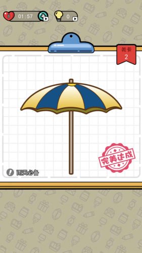 3、在游戏中,每个关卡中出现的物品都不同,需要引用智力联想,画出缺少的部位,才能通关。