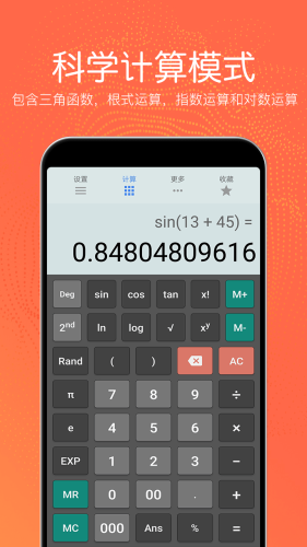 • 高级模式包括存储键,科学计算中还有三角函数,根式运算,指数运算和对数运算