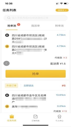 可以在app中开启/关闭听单模式,能及时获取平台提供的订单信息;
