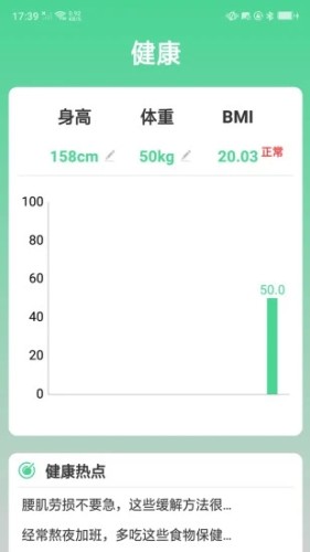 一款专业的走路计步功能的APP,每天可根据身高和体重监测BMI数据,轻松管理你的健康问题