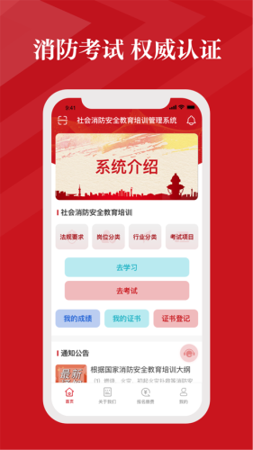 社会消防安全教育培训管理系统app是一款专为消防安全进行教育培训的教育类app。app为提供了考试报名,在线考试,证书查询等功能,让用户不用在经历线下繁琐的工作流程,极大的提高了考试效率。快来下载体验吧。