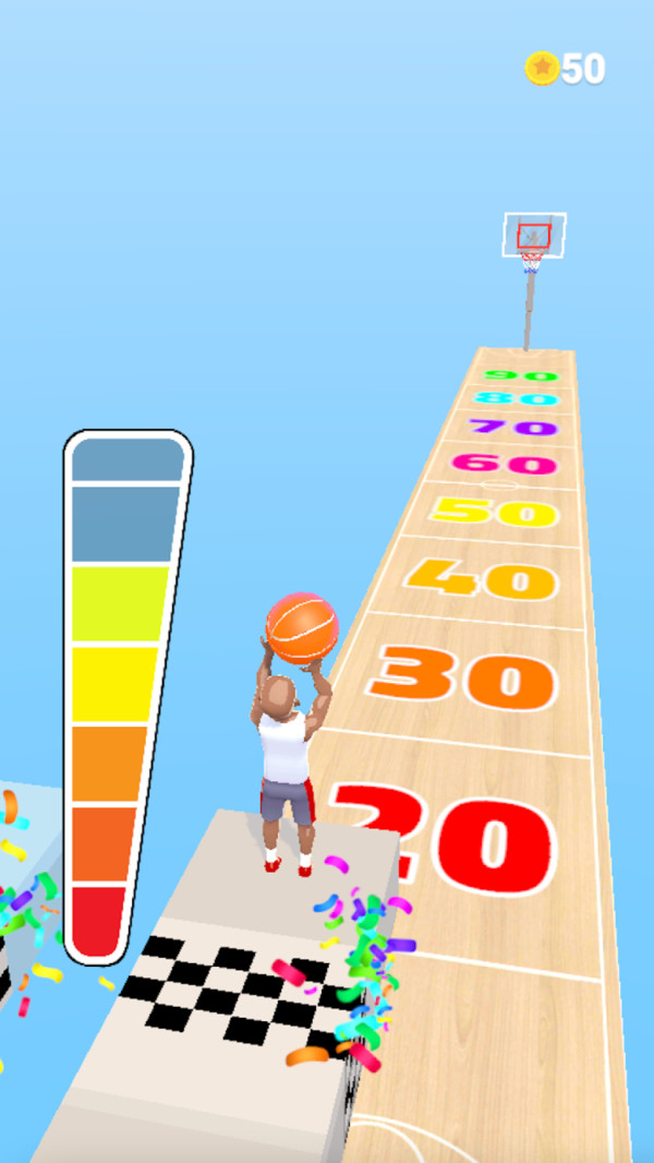 1、简单的点击屏幕玩法,趣味的灵活操作,给你最佳的投篮体验。