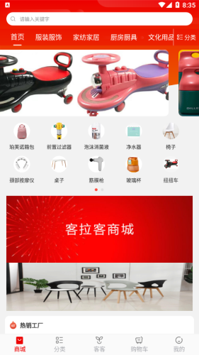 客拉客app是一款手机网络购物软件,软件中拥有大量的商品资源,用户可以在这里找到自己需要的商品,还有各种福利优惠券,享受低价购物。