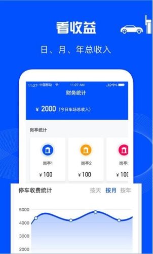 2、可以随时查看每日收入、停车数量,还有剩余车位等信息;